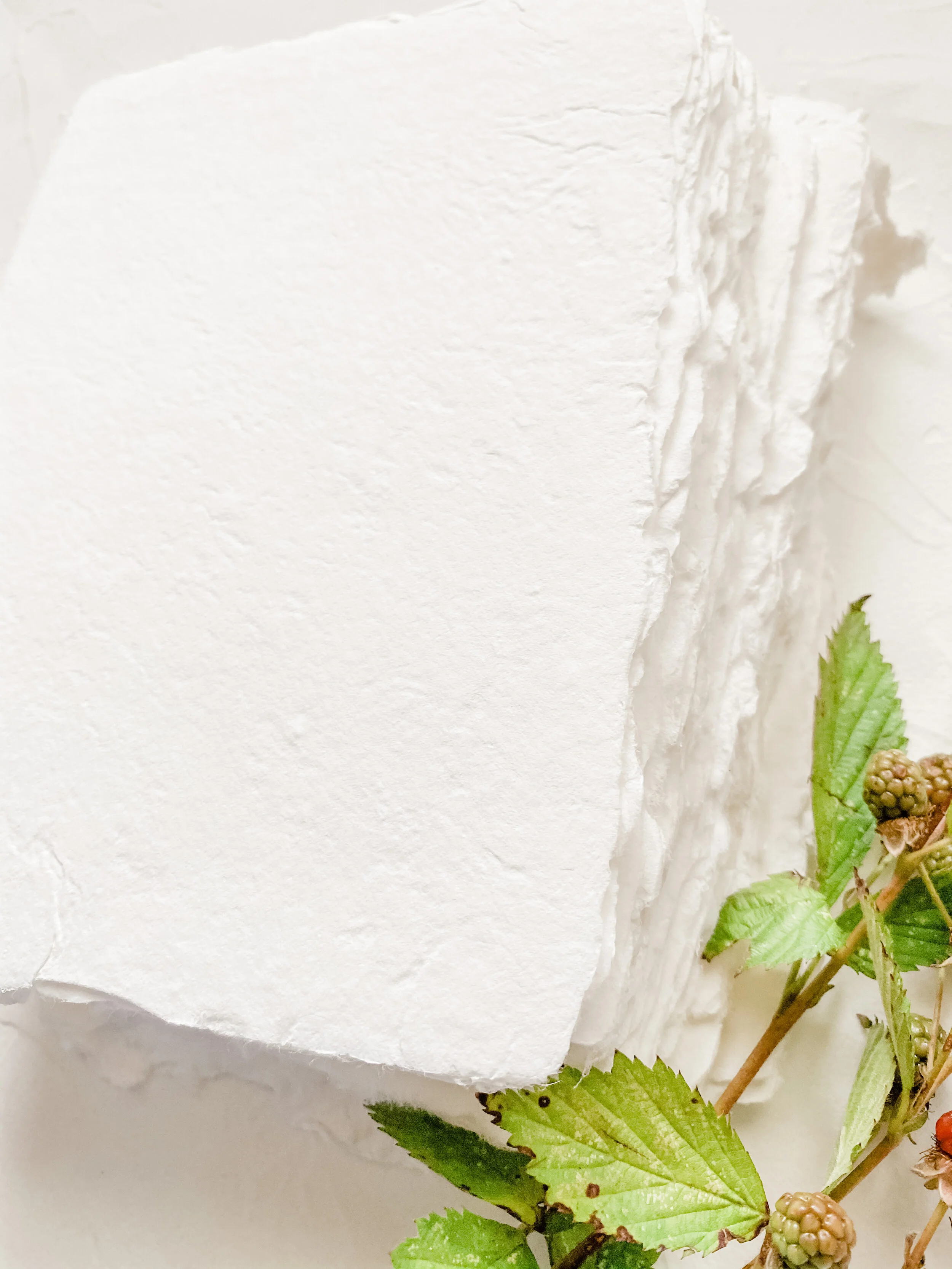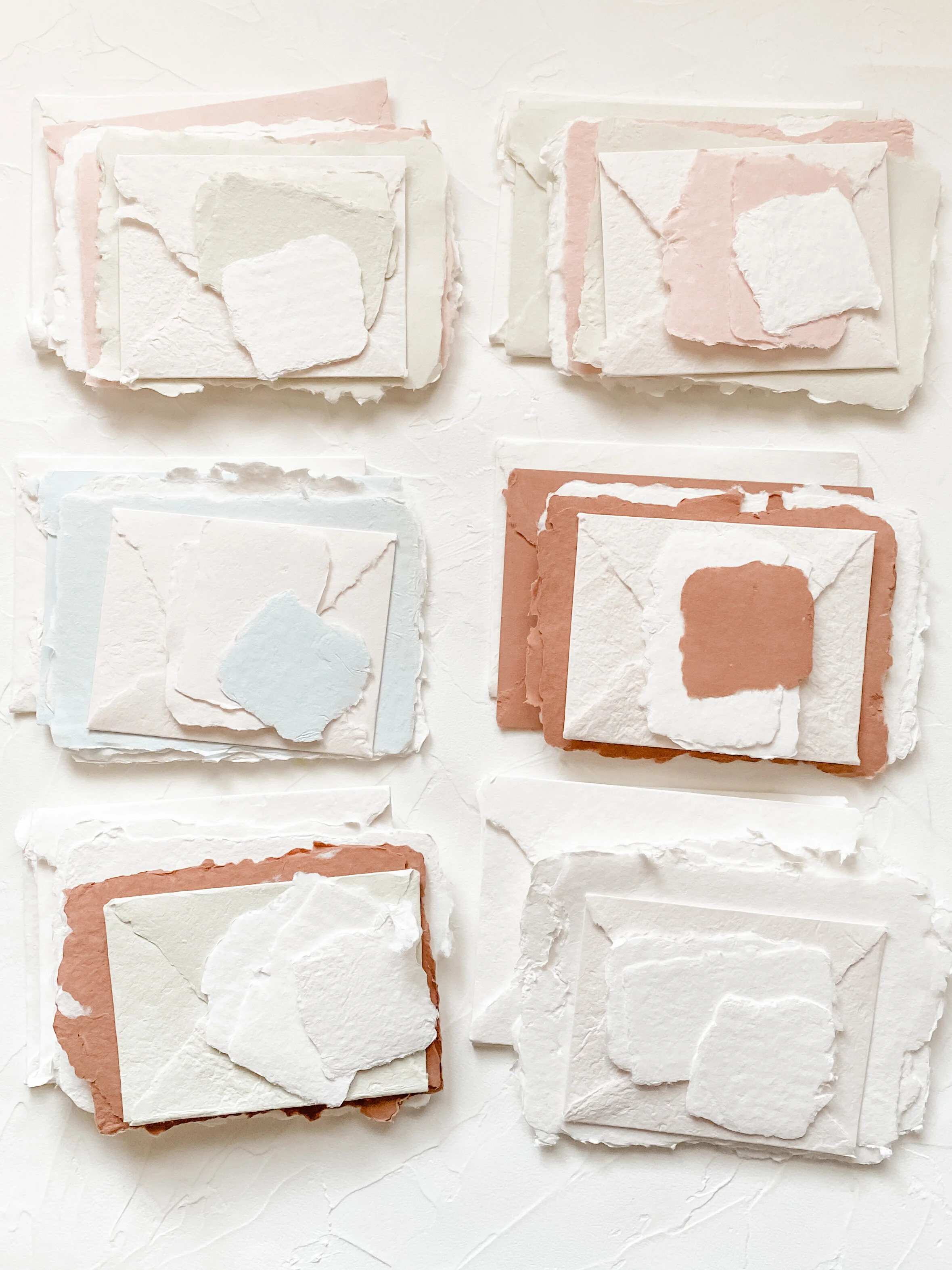 I make handmade paper with a blend of cotton and abaca fibers as well as other “recycled” fibers like blue jeans or cardboard. I use my handmade paper in my own stationery suites either digitally or letterpress printed as well as provide handmade paper to other artists. I make my own custom blended colors for seasons and also blend custom colors for clients. The paper is available in small batches or curated bundles in my shop. Please contact me for pricing of large or custom orders.!