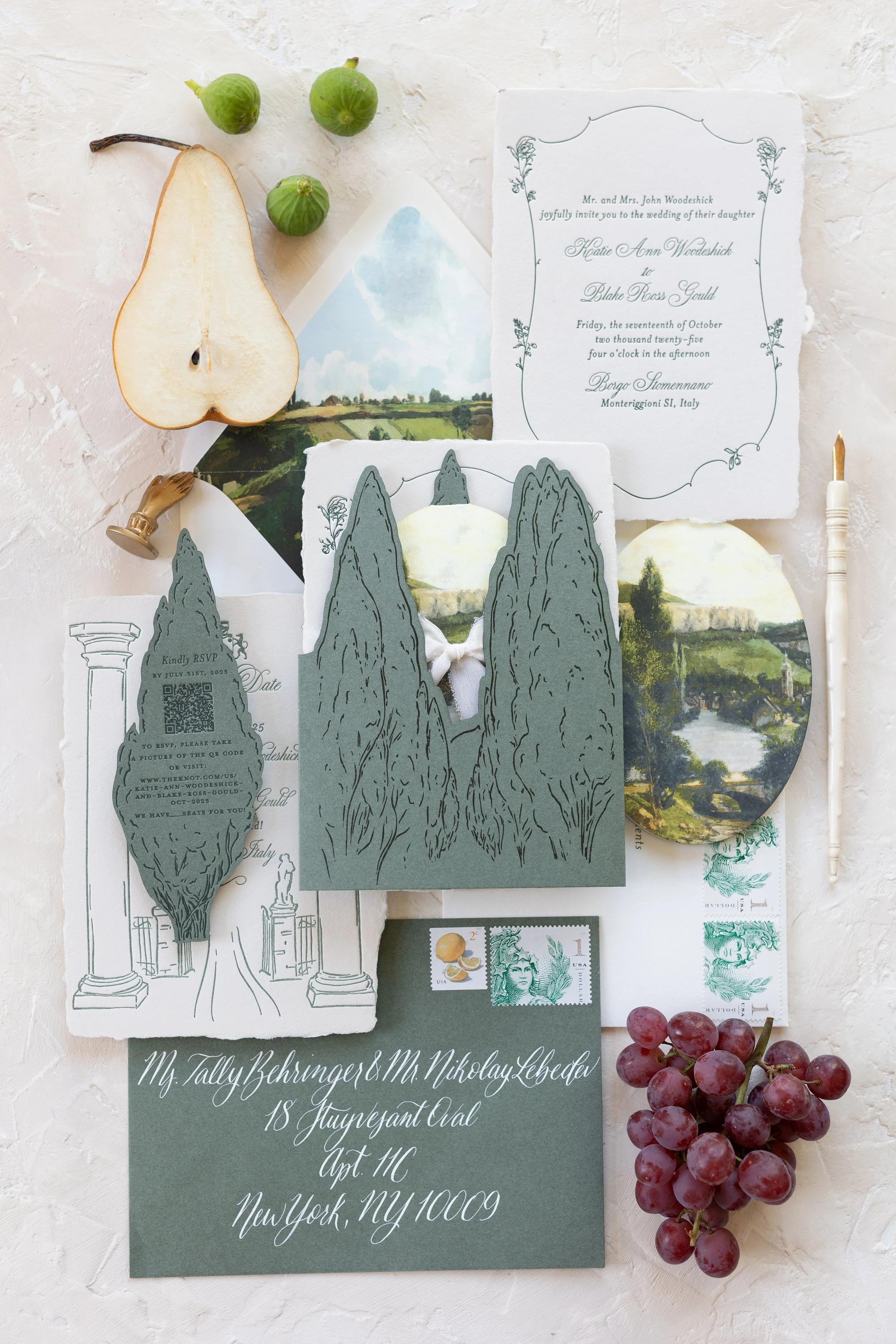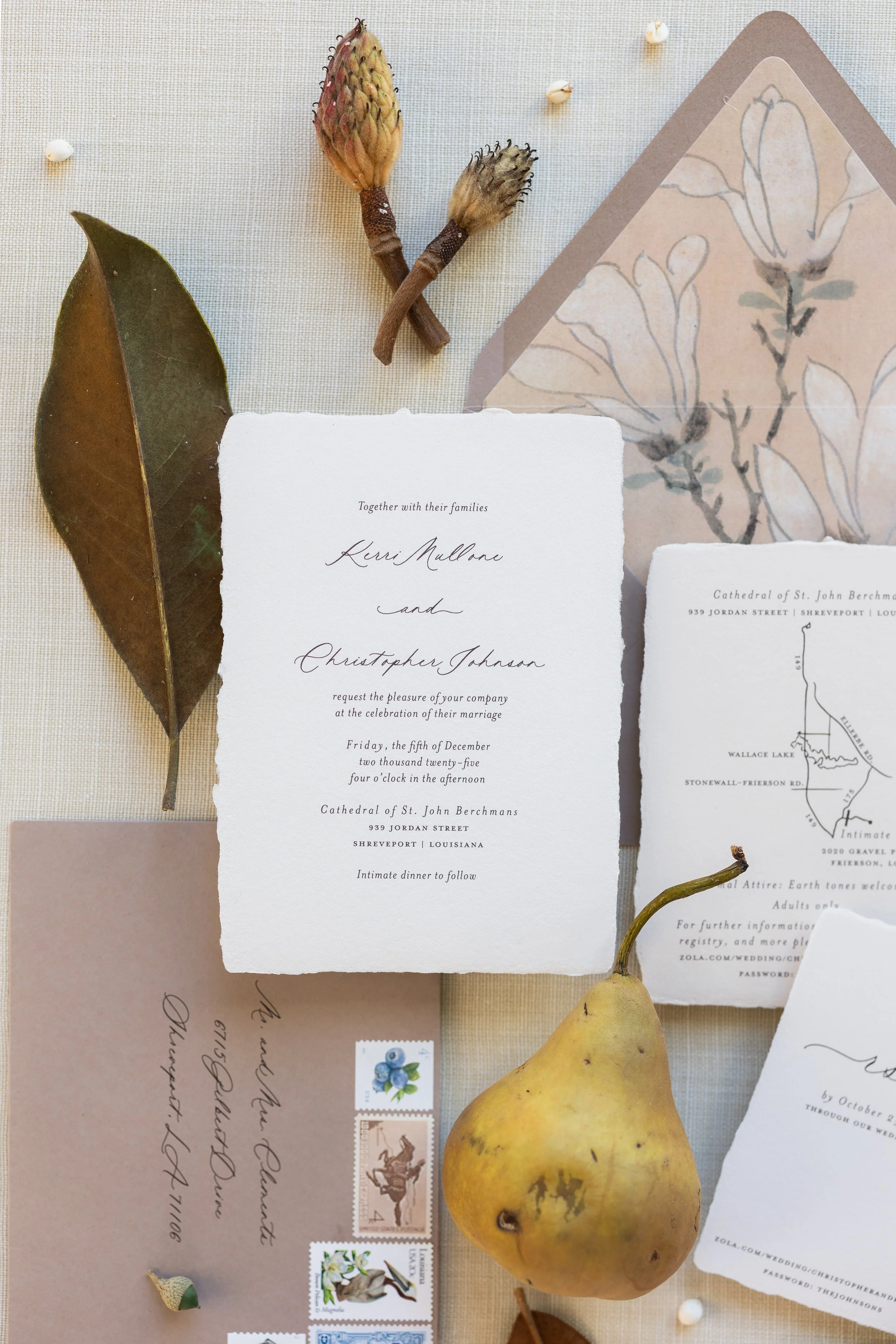 Envelope Liners- Envelope liners are a beautiful detail and a great place to use more artwork like a map or venue painting.